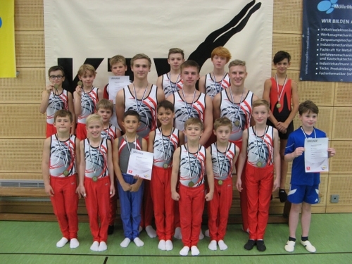 Die Mannschaft LK 1 (18 Jahre u. jünger) ist der amtierende Hessenmeister. Jonathan Feilcke, Jonathan Freiboth (beide Melsungen), Paul Bartling, Florian Schofeld (beide Niederzwehren) und Daniel Brandt (Neukirchen) haben die Titelverteidigung fest im Blick. Da es keinen Gegner gab, blieb ein wenig Raum, die Übungen im Hinblick auf die Ligawettkämpfe zu variieren. Trotz Problemen an Sprung und Barren war Jonathan Freiboth einmal mehr der Vorturner und trug mit 66,00 Punkten am meisten zum Gesamtergebnis von 181,40 Punkten bei.